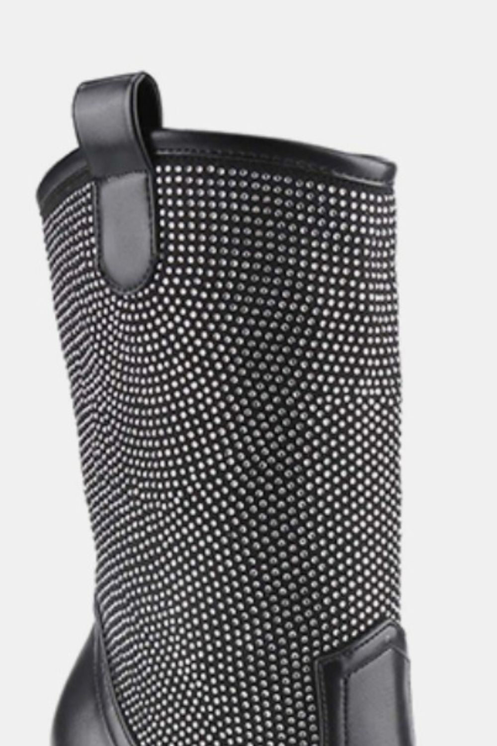 Weeboo Chunky Heel Rhinestone Western Black Cowboy Midcalf Boots